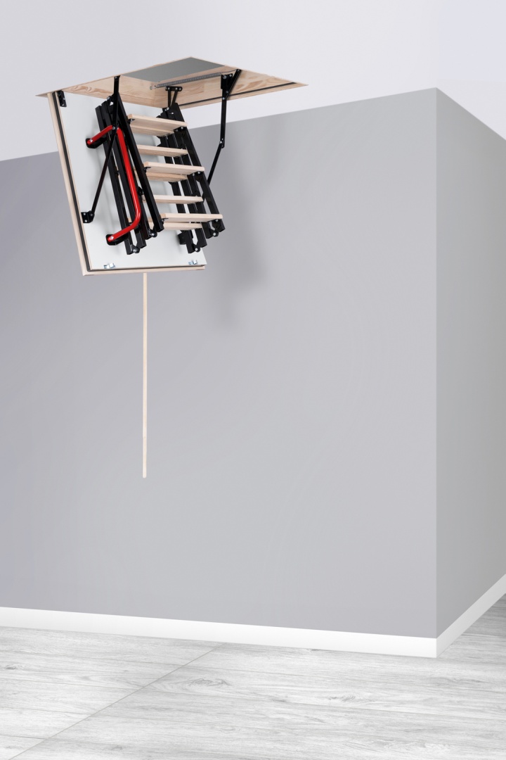 Schody  EI45 MINI charakteryzują się podwójnym uszczelnieniem, w tym pojedyńczym uszczelnieniem przeciwpożarowym oraz klapą o grubości 66mm.