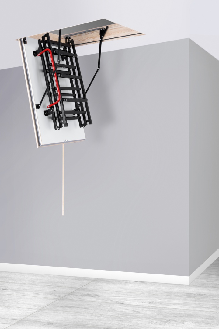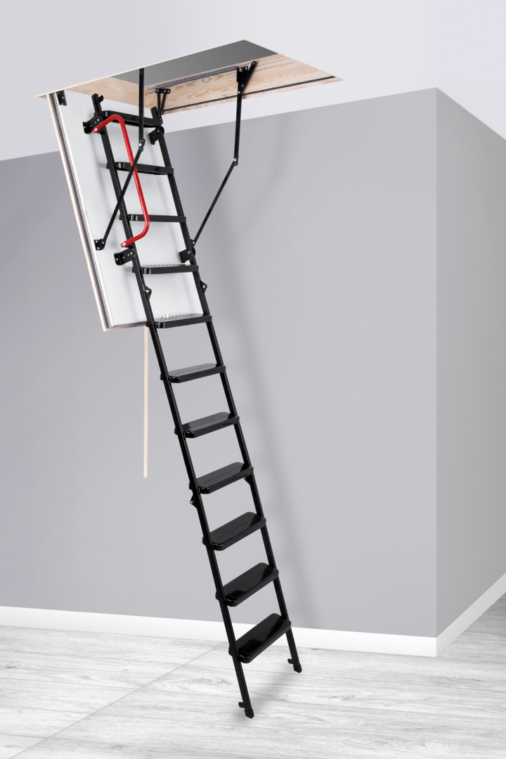 Wytrzymałe, przeciwpożarowe schody strychowe o wysokim współczynniku ognioodporności EI 60 oraz klapie o grubości 66mm. Schody posiadają metalową drabinkę, stopnie oraz stabilną i wytrzymałą poręcz.